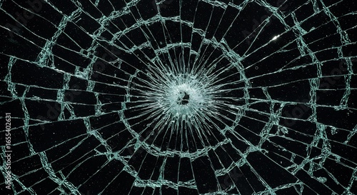 黒背景に広がるクラック、鋭い光沢の割れたガラス、抽象的テクスチャ. AI Generated