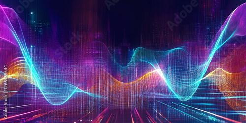 An abstract image depicting audio tracking technology, focusing on visual representations of sound waves,