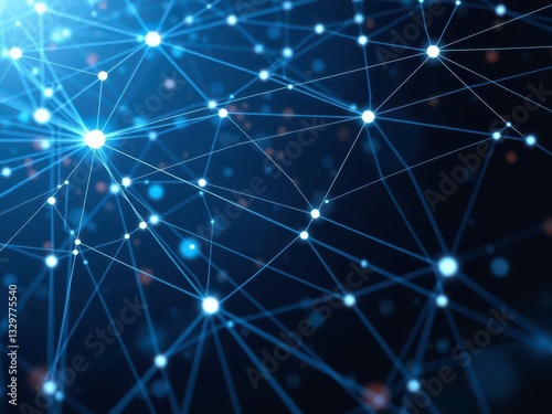 An abstract network of lines and nodes symbolizing global business connectivity and data flow, set against a dark blue tech