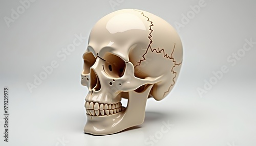 Ancient skull with cracked cranium and teeth