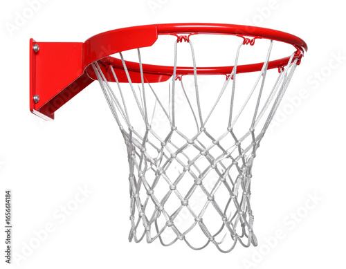 Angled Side Perspective of Basketball Hoop with Shadow Depth, White Background – AI Generated
