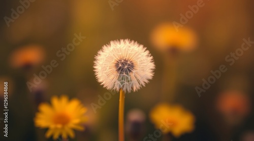 Art photograph depicting a large dandelion in soft ,wallpaper or background