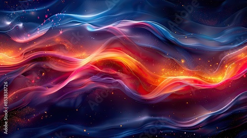 Artistic abstract with gold and orange paint flowing over dark blue waves