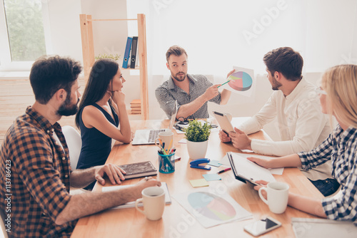 at a meeting manager showing document to his worker