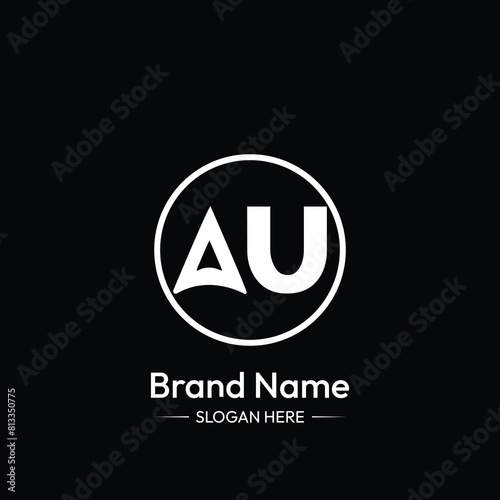 AU Letter Logo Design. Black Background.