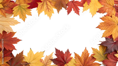 Autumn Leaf Frame with Colorful Maple Leaves on Transparent Background