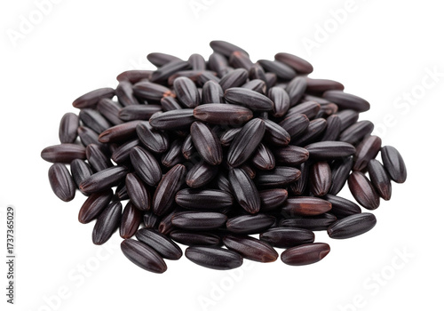 black glutinous rice grains scattered in a small pile isolated on transparent background