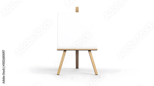 Blank Wooden Easel with White Canvas on Minimalist Background