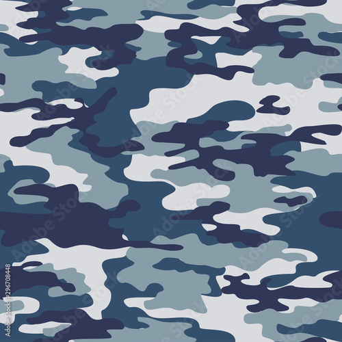 Blue camouflage seamless vector pattern for printing clothes, fabrics.