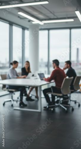 Blurred Business Meeting: Team Collaboration in Modern Office, Brainstorming, Strategy, Workspace, Partnership, Professionalism, Teamwork