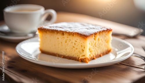 butter cake with white dish on wooden table