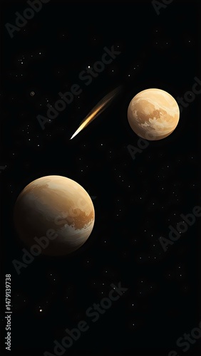 A mesmerizing blend of golden planets and a radiant meteor streak across a deep black cosmos. This space-inspired artwork captures the stillness and drama of the universe,