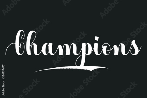 Champions Bold Calligraphy White Color Text On Dork Grey Background