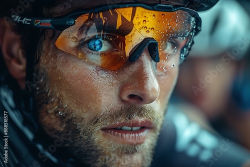 Close-up portrait of a track cycling cyclist at a bicycle racing competition
