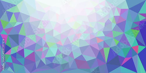Colorful abstract low-poly background with various pastel and vibrant triangles in shades of blue, purple, pink, and green, creating a geometric mosaic effect.