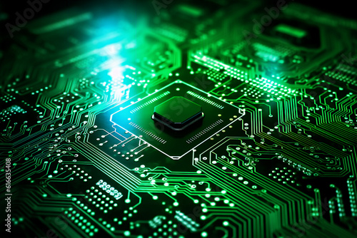 Concept of green technology. green recycle sign on circuit board technology innovations