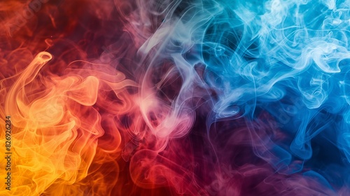 , dense tendrils of deep and dark smoke gracefully intertwine against a gradient backdrop, creating a mesmerizing blend of hues. Amidst this ethereal dance, vibrant abstract colors emerge, swirling an