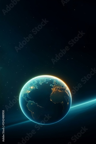 Earth Day glow: illuminated planet with stars and space, perfect for environmental themes and text copy space