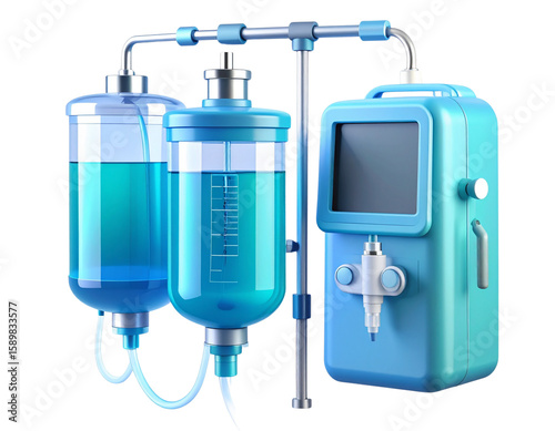 Floating Minimalist 3D Infusion Pump Icon with Soft Gradient Glow and Rounded Design, Healthcare UI Style, Transparent Background