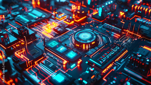 Futuristic server/Circuit board futuristic server code processing, technology background with vibrant color