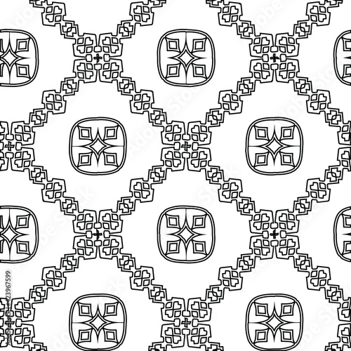 Geometric vector pattern with triangular elements. Seamless abstract ornament for wallpapers and backgrounds. Black and white colors.