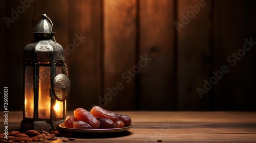 iftar meal and lantern lamp with copy space