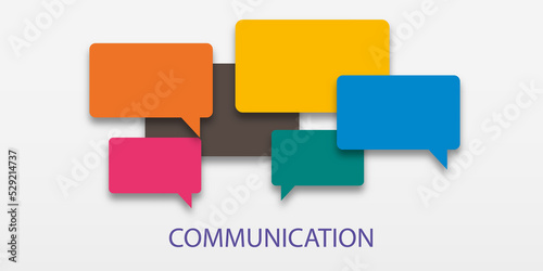 illustration of communication concept. Word communication with colorful dialog speech bubbles. Paper cut style on white isolated background. Community concept