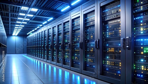 Industrial-Grade Server Room Featuring Backup Power Units, Precision Cooling Systems, Server Racks, Exposed Power Cables, and Ventilation Infrastructure