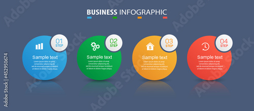 Infographic design template with 4 steps for business. Can be used for workflow layout, diagram, annual report, web design, steps or processes