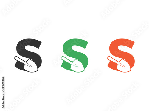 initials letter S shovel tool symbol icon design vector isolated on transparent background