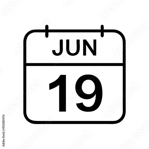 june 19 calendar icon, juneteenth line art, juneteenth icon - simple black line art icon of june 19 calendar, symbolizing juneteenth celebrations. juneteenth vector art.