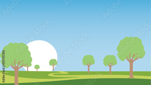 Landscape in village with green field