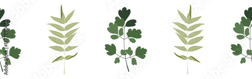Leaves border on a white background. Hand-drawn illustration. Perfect for spring and summer.
