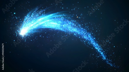 Light arc shooting star with magic neon curve Glitter flare arch line trail Blue dust sparkle glows from meteor flying at night