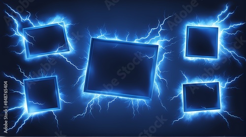 Lightning frames, blue electric borders of rectangular and square shapes with thunder bolt effect. Isolated photo frames with thunderbolt impact, magical energy flash, realistic 3D vector bolts set
