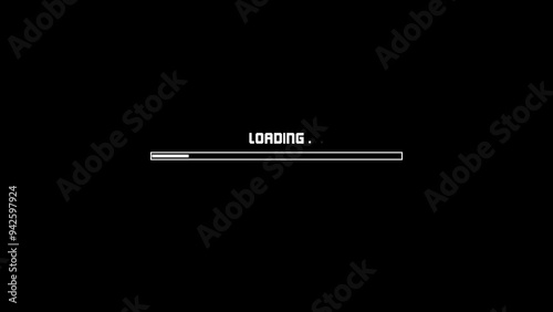 Loading white color 4k illustration. rectangle frame download progress, Upload, download on black background.