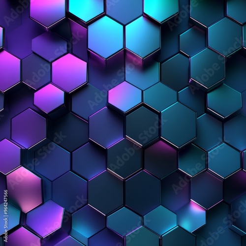 ## Luxurious Digital Design: Metallic Hexagons & Neon Glows