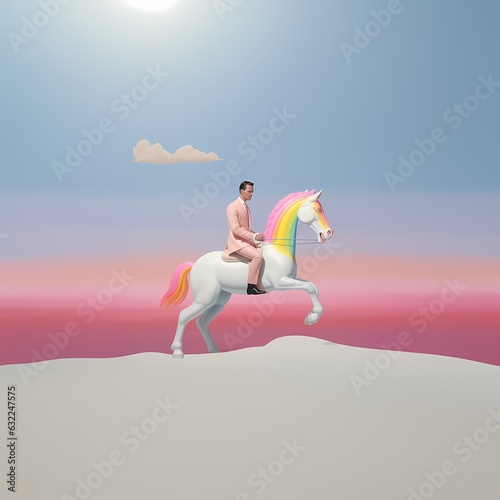 man riding a unicorn in a desert, in the style of contemporary candy - coated