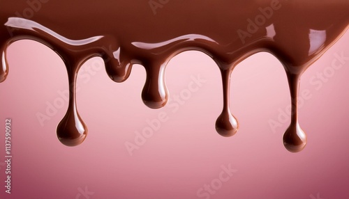 Melting chocolate dripping from the top of the frame. The background has a pink gradient