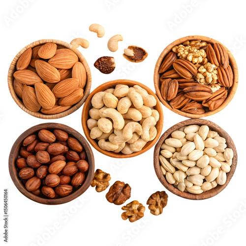 Mixed Nuts in Wooden Bowl isolated Transparent Background