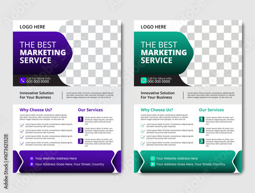 Modern Digital Marketing Agency Business Flyer Template with Abstract Geometric Shapes and Placeholder for Photo - Professional Corporate Services Promotion Design