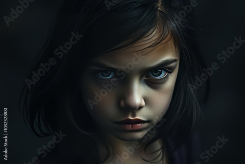 Moody atmospheric portrait of a girl with a bold striking expre