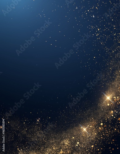 Navy Blue Background with Golden Glitter Sprinkles, Creating an Elegant and Luxurious Atmosphere with Minimalist Style and Copy Space