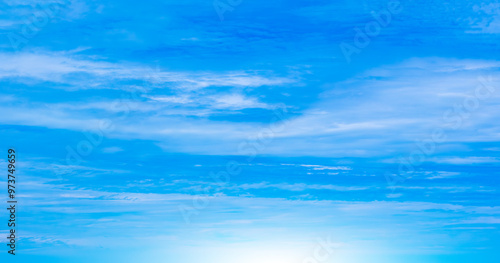 Panorama of cloud clear sky background for summer vacation concept at ocean and summer sea water with sunlight of beautiful cloudy sky.
