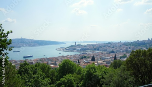 Panoramic view of a coastal city under a clear sky