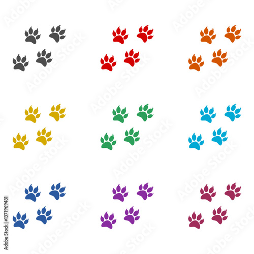 Paw print icon isolated on white background. Set icons colorful