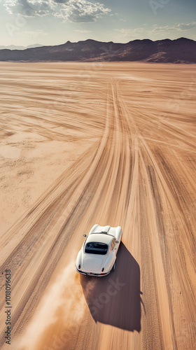 Photo of White Sports Car Driving Through the Desert – Template for Design and Text