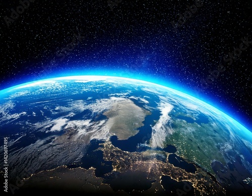 Planet earth globe view from space showing realistic earth surface and world map as in outer