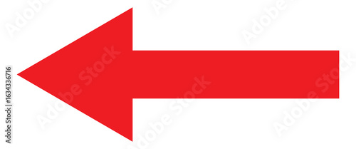 Red arrow pointing vector. Red left arrow icon. Straight long arrow pointing . Vector red long arrow icon. Thin long arrow vector icon. A solid long arrow pointing on white background.