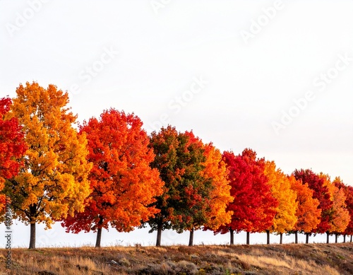 Ridge Line of Fire Trees — horizon stripe of saturated foliage under pale sky Ai